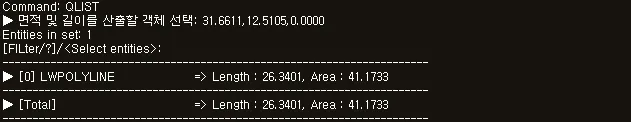 4) 명령창에 선택한 객체의 길이와 면적이 표시됩니다.