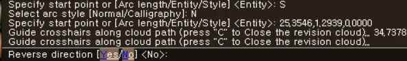 - Yes 키워드가 선택된 경우 현재 그려진 리비전 구름마크의 방향을 뒤집습니다.