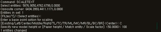 1) 명령창에 “SCALETEXT” 명령어를 실행합니다.
