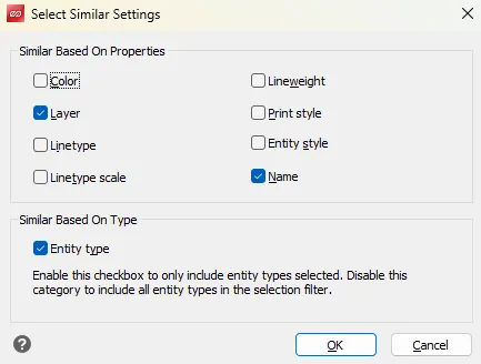 • 도면에서 특정 조건(예: 레이어, 색상, 객체 종류 등)을 기준으로 객체를 빠르게 선택 하는 기능입니다.