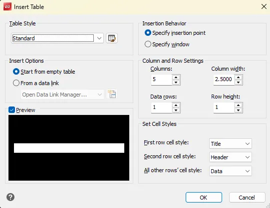 섹션 제목: “1. 표 스타일 생성 및 편집하기 시연 영상”1) “TABLE” 명령어를 실행합니다.