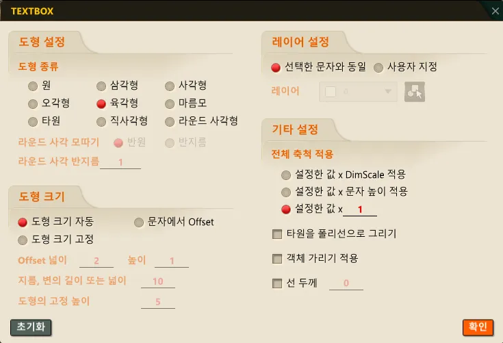 2) “S” 를 입력하고 TEXTBOX 대화상자에서 원하는 옵션을 설정합니다.