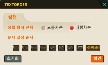 2) “S” 를 입력하고 TEXTORDER 대화상자에서 원하는 옵션을 설정합니다.