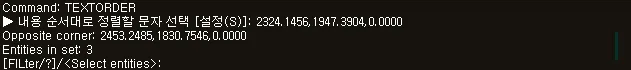 섹션 제목: “1. 텍스트 정렬하기 시연 영상”1) “TEXTORDER” 명령어를 실행합니다.