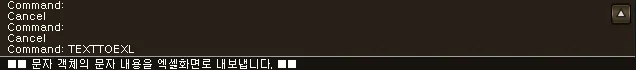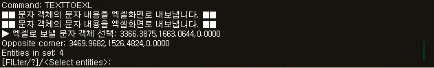 섹션 제목: “1. 문자 → 엑셀 내보내기 시연 영상”1) “TEXTTOEXL” 명령어를 실행합니다.