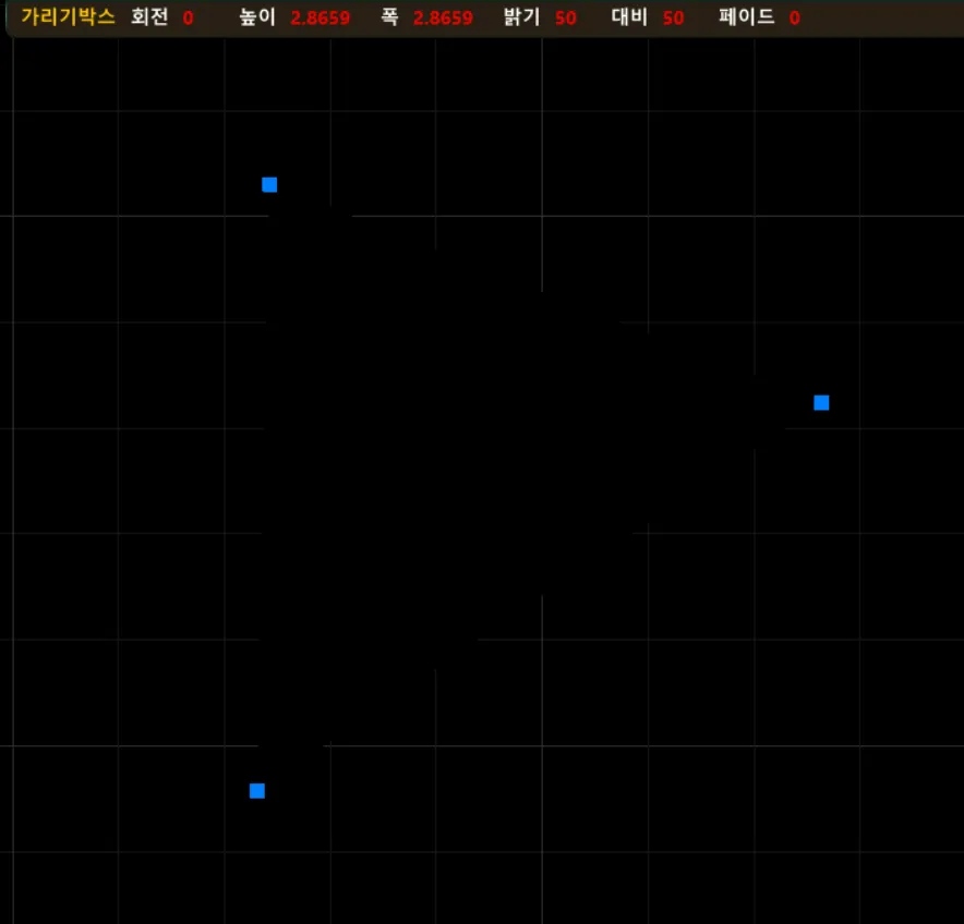 • Angle: 입력한 각도를 가진 가리기 박스의 선을 그립니다.