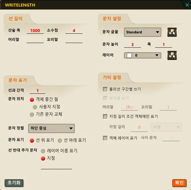 2) WRITELENGTH 대화상자가 나타납니다.